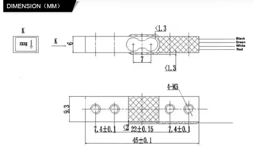 Output sensitivity | 300g: 0.7±0.15MV/V , 500g-750g: 0.8±0.15 MV/V, 1kg-3kg: 1.0±0.15 MV/V |